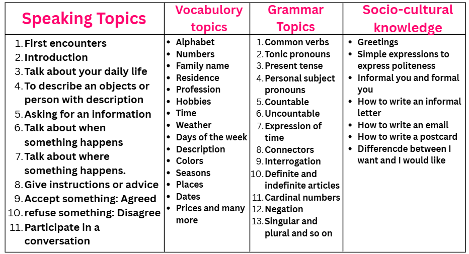 Course Details: The details of the Spanish A1 learning paths are as follows: